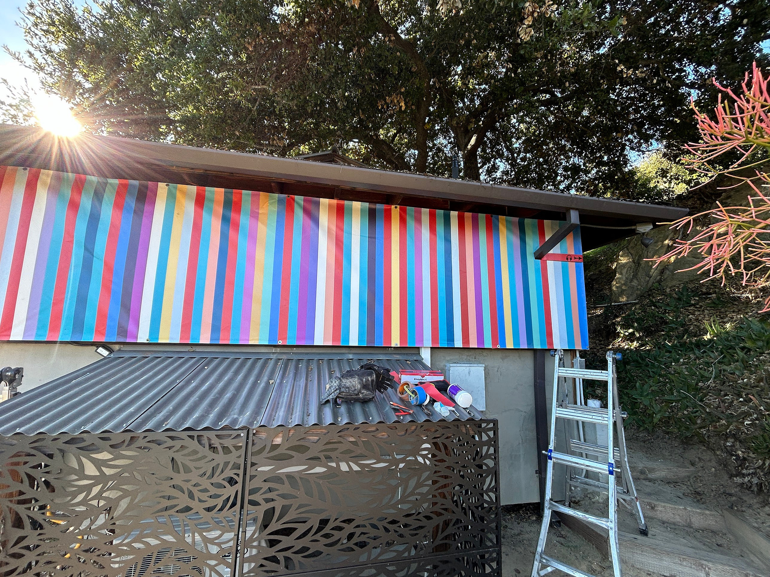 I offer art installation and the kind of weird house fixes that are unique to a particular residence. If it can be hung, I can hang it, securely and earthquake ready. Doesn't matter the wall type: drywall, lath plaster, wood, brick, or concrete. Even if it's not meant to be hung - I can mount it. I've hung modified street lights and crosswalk signs for offices, vintage stained-glass panes from a church in the Midwest using custom cleats, and a custom-built projection screen from an 18' ceiling that can be lowered by a hand-crank. I've had to make custom brackets and spacers many times for unique situations.